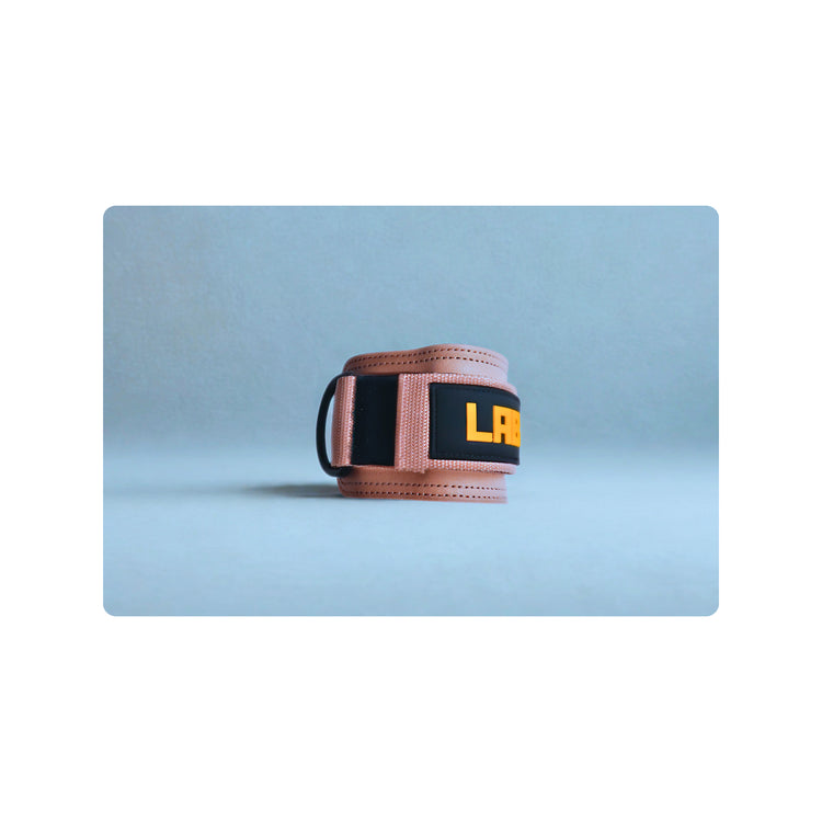 Pink LABORATORY ANKLE STRAP with 'LAB' logo on a light blue background